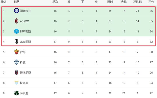 由于AC米蘭和那不勒斯的比賽都先踢,因此他們都先后反超了國(guó)米。好在國(guó)米沒有讓球迷失望,在1-0戰(zhàn)勝亞特蘭大之后,他們也重回榜首,目前以1分的優(yōu)勢(shì),力壓同城死敵AC米蘭,在意甲積分榜排名第一。